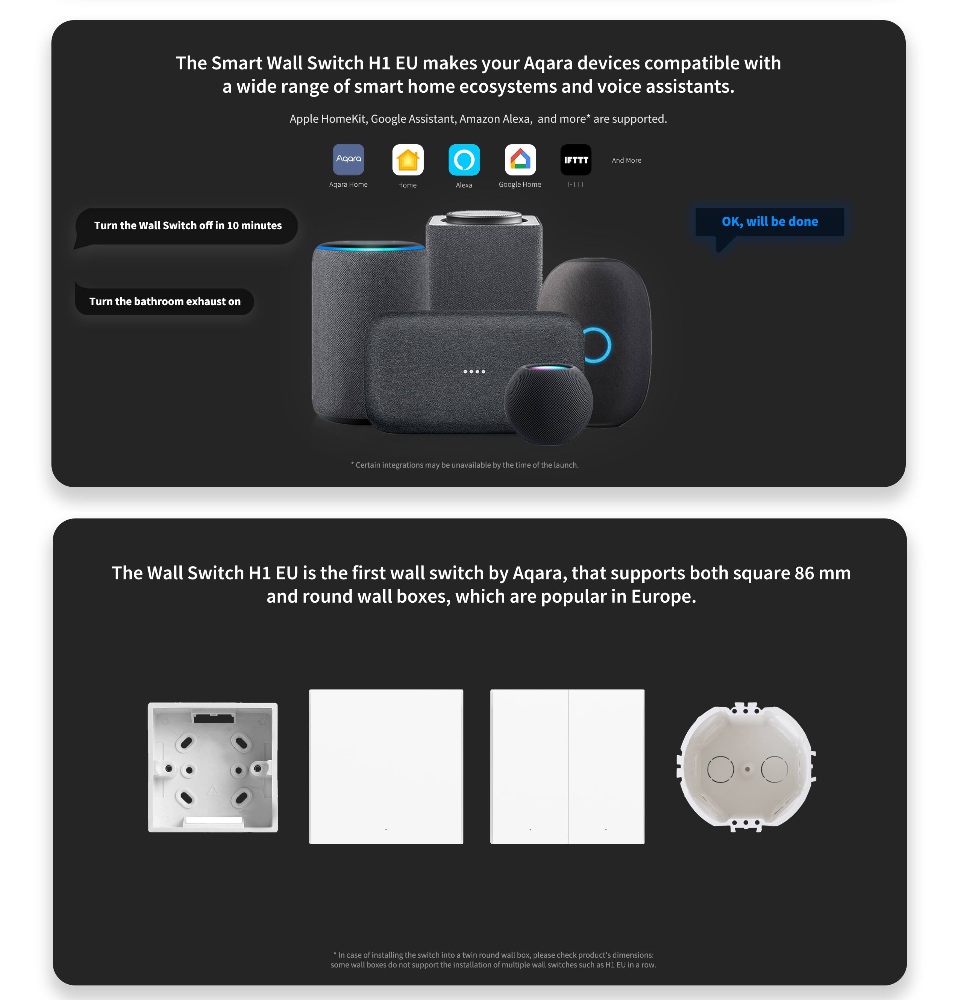 AQARA智能墙壁开关H1(三摇杆/Gang)支持苹果HomeKit、Alexa、谷歌(智能灯开关)